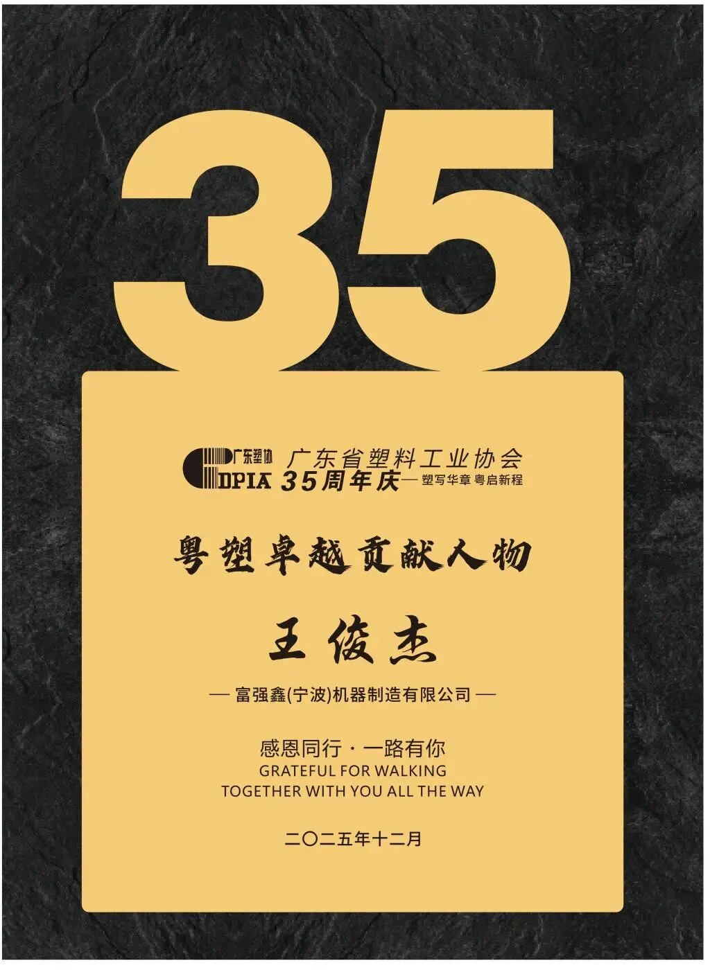 2025년 12월 17일, 광둥성 플라스틱 산업 협회(GDPIA)의 연례 총회 및 창립 35주년 기념 행사가 광저우에서 성대하게 개최되었습니다. 협회 관계자, 회원사, 그리고 광둥성 전역의 관련 업계 단체 관계자 약 600명이 이 뜻깊은 행사에 참석했습니다.